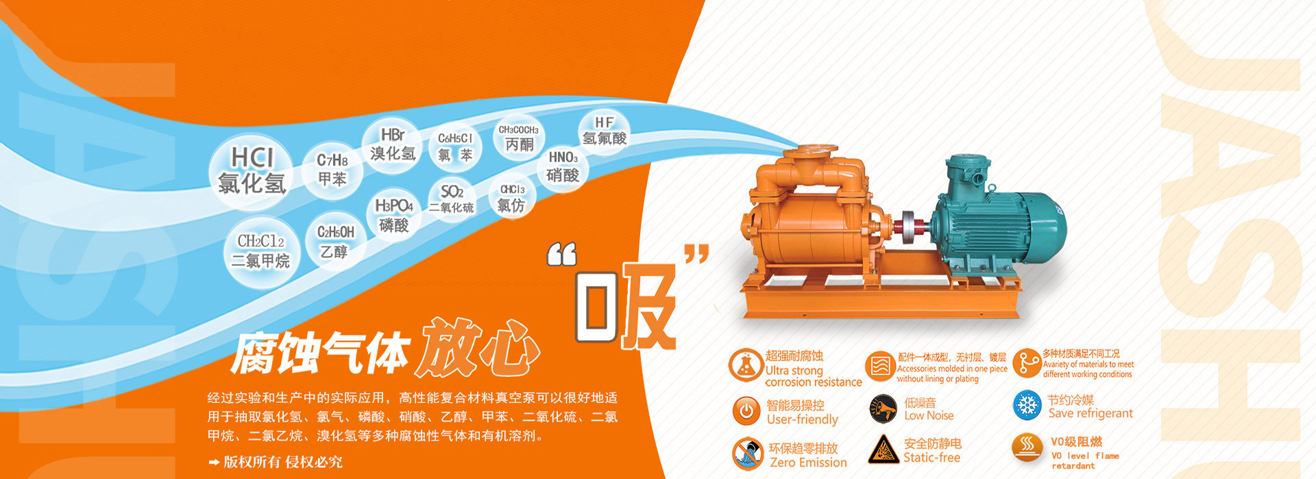 公司獨立研發的具有自主知識產權的多項專利產品 一耐腐蝕系列水環式真空泵。